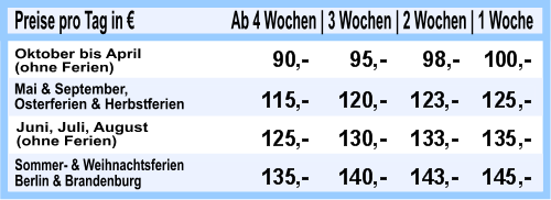 Ausführliche Informationen zum Urlaubs-Schutz-Versicherungspaket finden Sie hier!  | 8,90 € pro Tag bis zu einem Tagesmietpreis von 100 € 10,90 € pro Tag ab einem Tagesmietpreis von 100 €  |